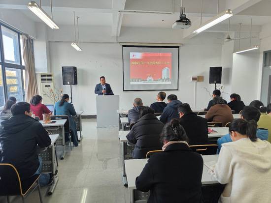 1月12日,44118太阳成城集团在实训楼4418会议室召开2024年第一次全院教职工大会,公司全体教职工参加会议,会议由公司党委副书记、经理王金果主持会议。