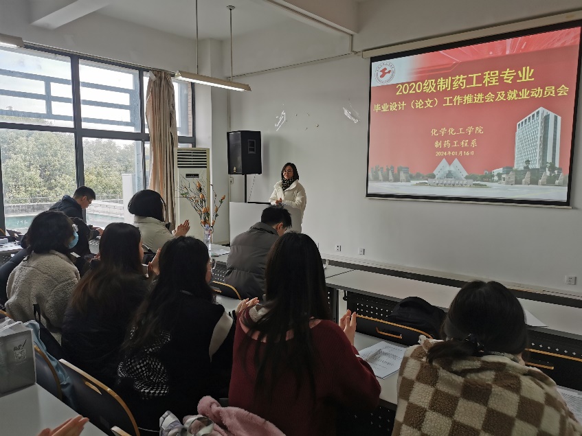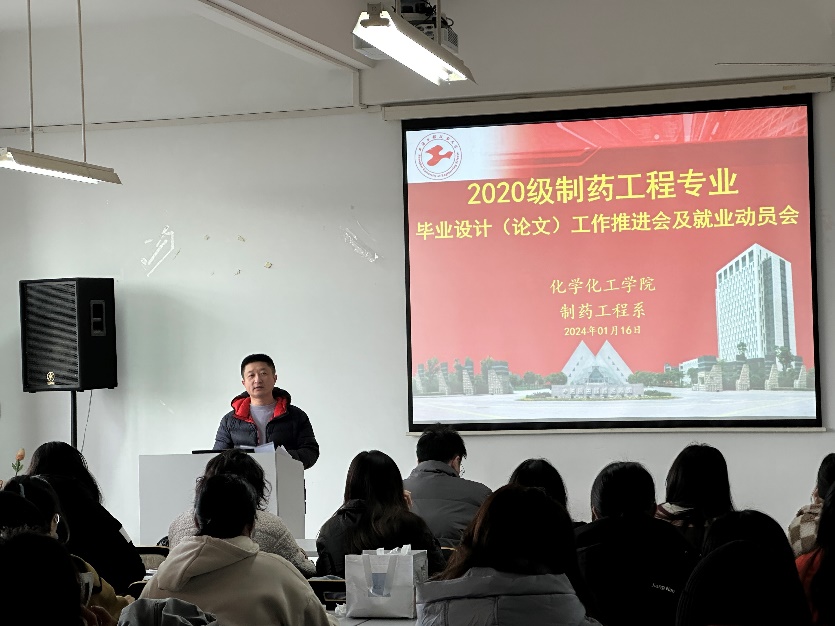 就业工作是最重要的民生工程,就业工作不停歇。临近学期末,44118太阳成城集团制药工程专业为促进应届毕业生学业和就业,1月16日在实训楼4418召开全体毕业生毕业设计(论文)工作推进会暨就业动员会,引导员工积极应对经济形势对就业的影响,实现员工高质量毕业论文及充分就业,制药工程系主任王晗、部分教师代表、辅导员和全体毕业生参会。