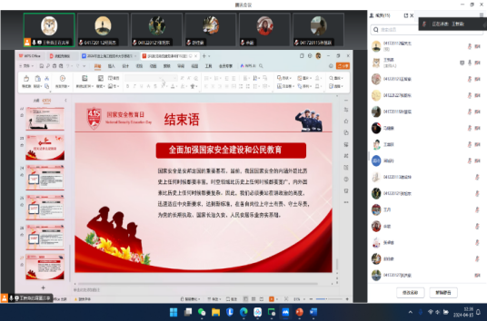 公司研究生、本科生以专业班级为单位,分别由辅导员、班主任、班导师主持召开了国家安全教育主题班会。辅导员王一凡老师在班会上特别讲解了关于网络安全和信息安全的相关事宜,引导员工提高网络安全意识;涂料工程专业王新燕老师在班会上引用典型涉及国家安全的案例,给同学们留下了深刻影响;环境工程系主题班会上强调了反间谍法的学习和从小事做起维护国家安全;制药工程专业在讨论时认为还应该传承和弘扬中华优秀传统文化,抵御不良文化侵蚀,维护国家文化安全。