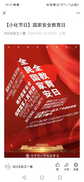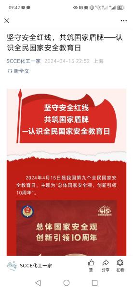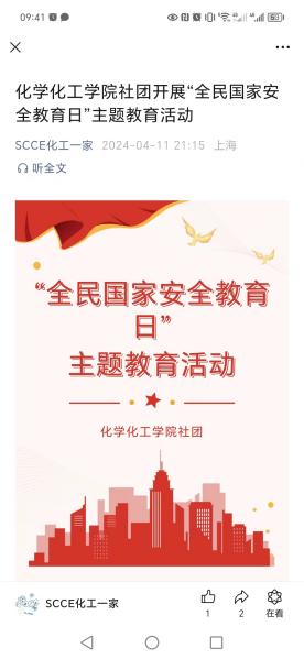 公司充分利用网络资源宣传国家安全相关知识。一方面,团委组织各团支部、社团通过观看国家安全科普视频、参与网络国家安全主题互动等方式宣传国家安全;另一方面,团委在公司微信公众号“SCCE化工一家”、易班中心在易班平台推送多篇国家安全教育主题推文,有效扩大了宣传范围。