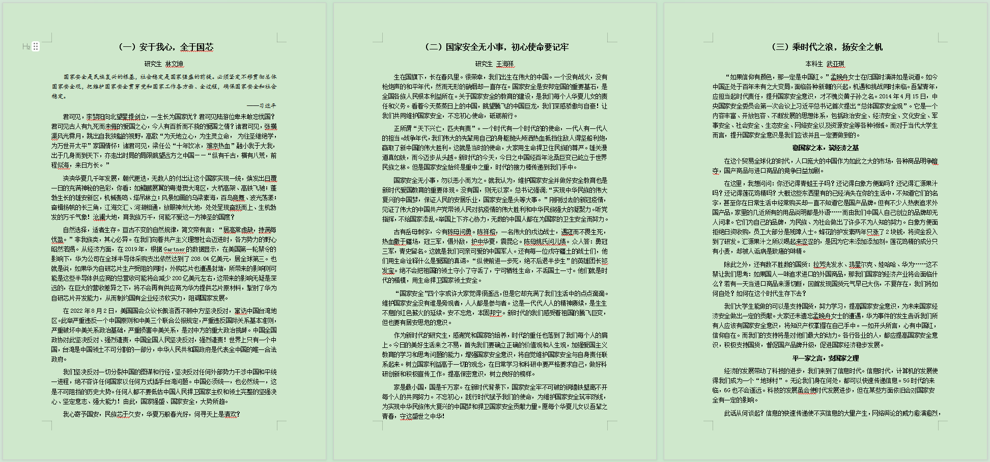 公司组织开展“我眼中的国家安全教育”主题征文活动,号召全院员工通过文字表达,分享自己在日常生活中对国家安全的认识、所见所闻、所学所思,以及对如何提高国家安全意识和能力的思考和建议。活动开展后,收到了包括研究生、本科生在内的员工征文四十余篇,在全院营造了人人重视国家安全教育的良好氛围。