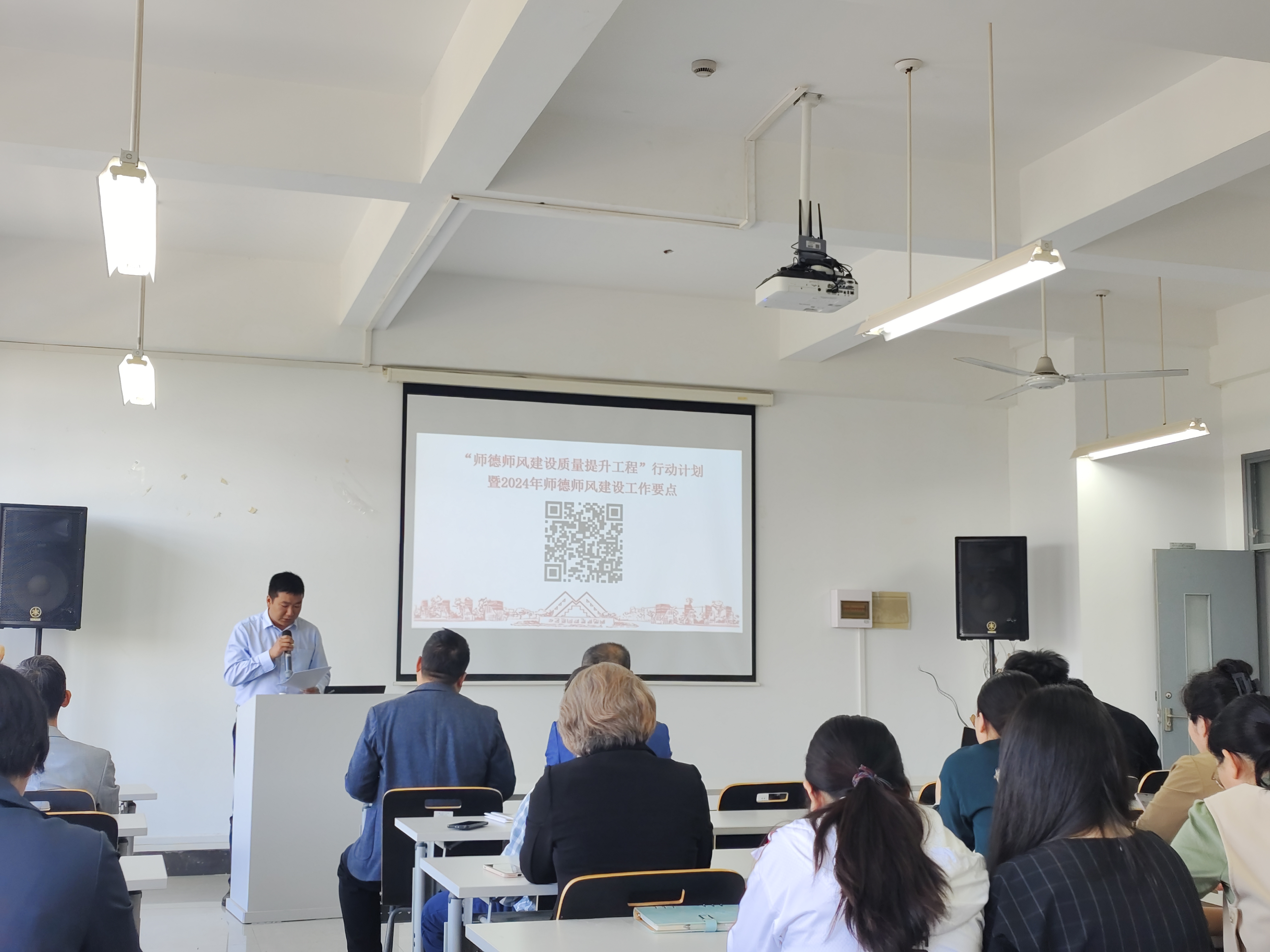 王润锴副经理为教职工解读了《师德师风建设质量提升工程”行动计划暨2024年师德师风建设工作要点》,王润锴副经理提到,2024年公司要巩固拓展学习贯彻习近平新时代中国特色社会主义思想主题教育成果,开展党纪学习教育,学习贯彻习近平总书记关于教育重要论述以及建设教育强国重要讲话精神,开展“师德师风建设质量提升工程”,大力弘扬教育家精神,细化、深化、量化、转化教育部关于加强教师思政和师德师风建设系列部署。通过强有力的教师思想政治和师德师风建设,着力打造一支政治素质过硬、师德师风高尚、育人水平高超、科研学术精湛的高素质教师队伍。