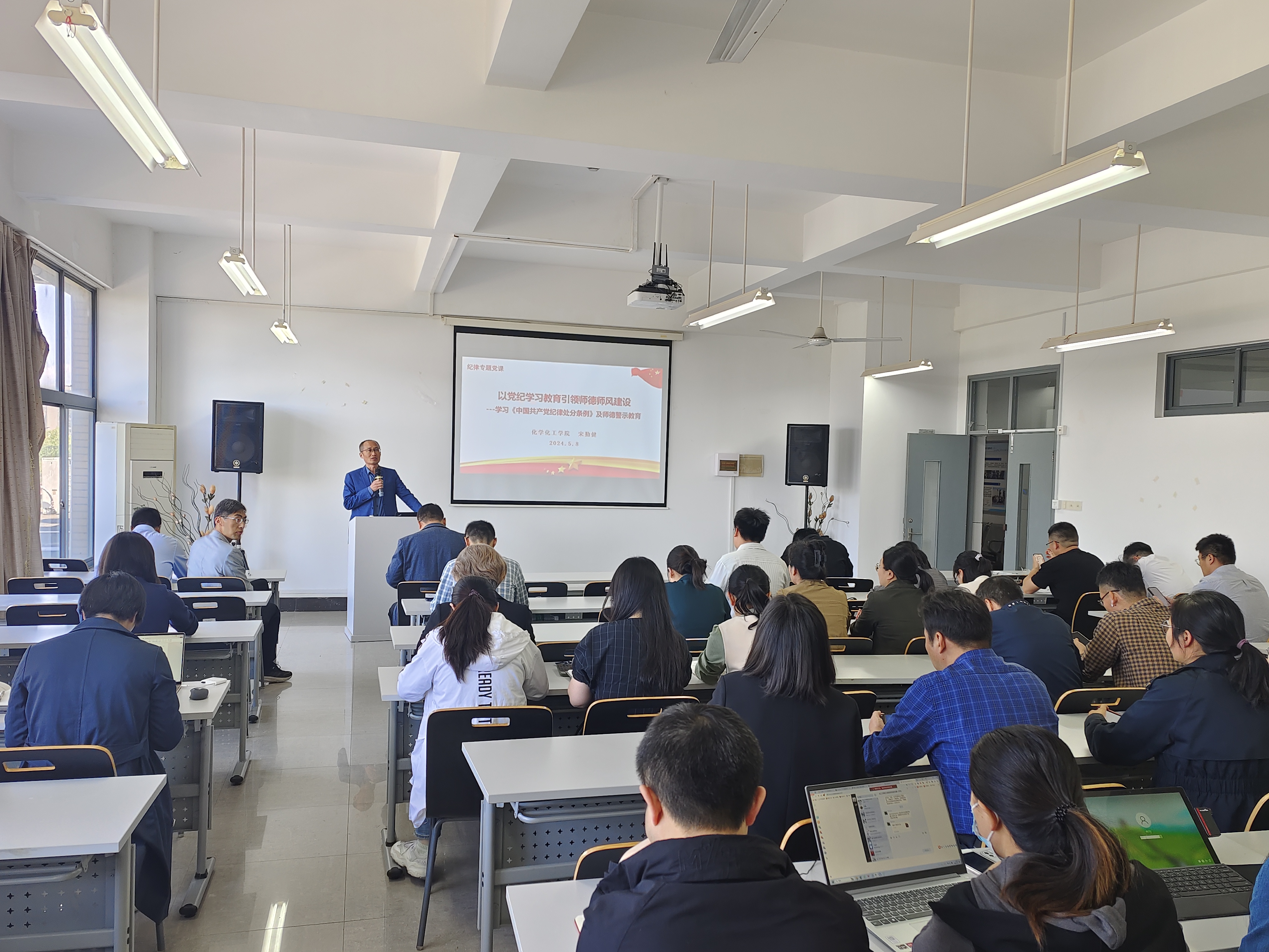 宋勤健书记以“以党纪学习教育引领师德师风建设”为主题,阐释了以党纪学习教育引领师德教育,推动师德师风建设高质量发展。宋书记强调,党的二十大对全面加强党的纪律建设作出战略部署,公司全体党员要坚决贯彻执行中国共产党员纪律处分条例,切实维护纪律的刚性、严肃性。随后,宋书记通过各类师德师风失范以及违反党纪警示案例,结合公司实际情况,提出教职工在工作生活中需要注意的问题,推进了公司师德师风建设。