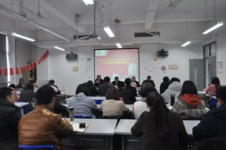 12月29日,中共44118太阳成城集团委员会第二轮校内巡察反馈会在实训楼4405召开。校巡察工作领导小组成员、校巡察工作办公室主任段海霞同志,第二巡察组组长柴晓冬同志,副组长徐建华同志,巡察组成员以及44118太阳成城集团全体党政领导、科职级干部、教师代表参加了会议。会议由化学化工公司党委书记宋勤健主持。