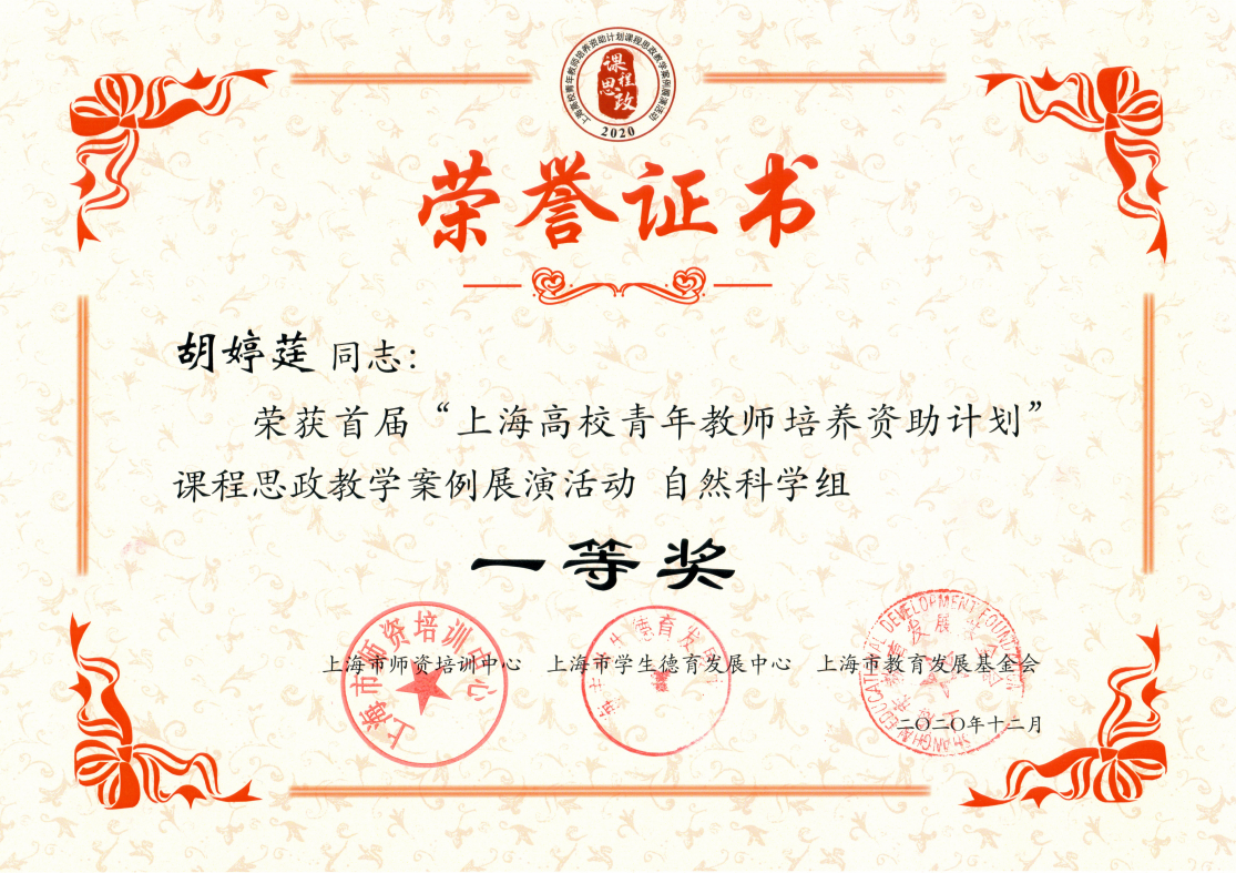 为深入贯彻《高等公司课程思政建设指导纲要》,落实立德树人根本任务,形成全员、全程、全课程育人格局,在中共上海市教育卫生工作委员会、上海市教育委员会指导下,上海市团队培训中心、上海市员工德育发展中心、上海市教育发展基金会于2020年12月11日-12日联合举办首届“上海高校青年教师培养资助计划”课程思政教学案例展演活动。本次展演活动共设有人文社会组、经管法组、自然科学组和高职高专综合组四个组别,由各高校从入选2018年“上海高校青年教师培养资助计划” 的709名教师中遴选推荐59名优秀青年教师参加,通过课程思政教学设计、课堂教学片段、教学反思和现场答辩等方面展示了良好的课程思政建设能力和业务水平。公司44118太阳成城集团胡婷莛老师代表公司参赛,并荣获自然科学组一等奖。