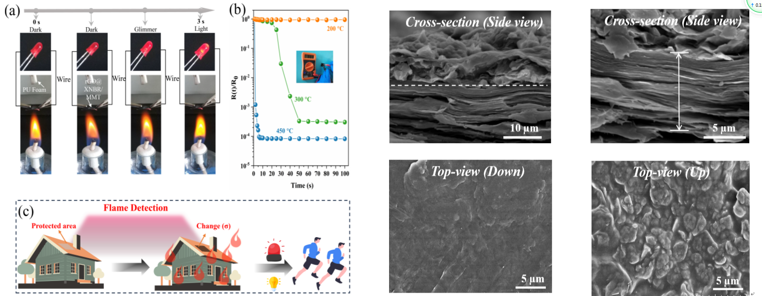 发表于《Sensors and Actuators: B. Chemical》上的论文题为“High-performance nacre-like graphene@polymer supported montmorillonite composite actuator and sensor”(DOI: 10.1016/j.snb.2021.129446)。在基于石墨烯优异的力学以及光热转化性能的基础上,通过纳米层间结构设计构筑一种高强度、高导热和耐高温的新型制动器和传感器,在火灾预警和模拟人手进行智能抓取等方面具有重要应用。上述研究得到了国家自然科学基金青年科学项目的资助。