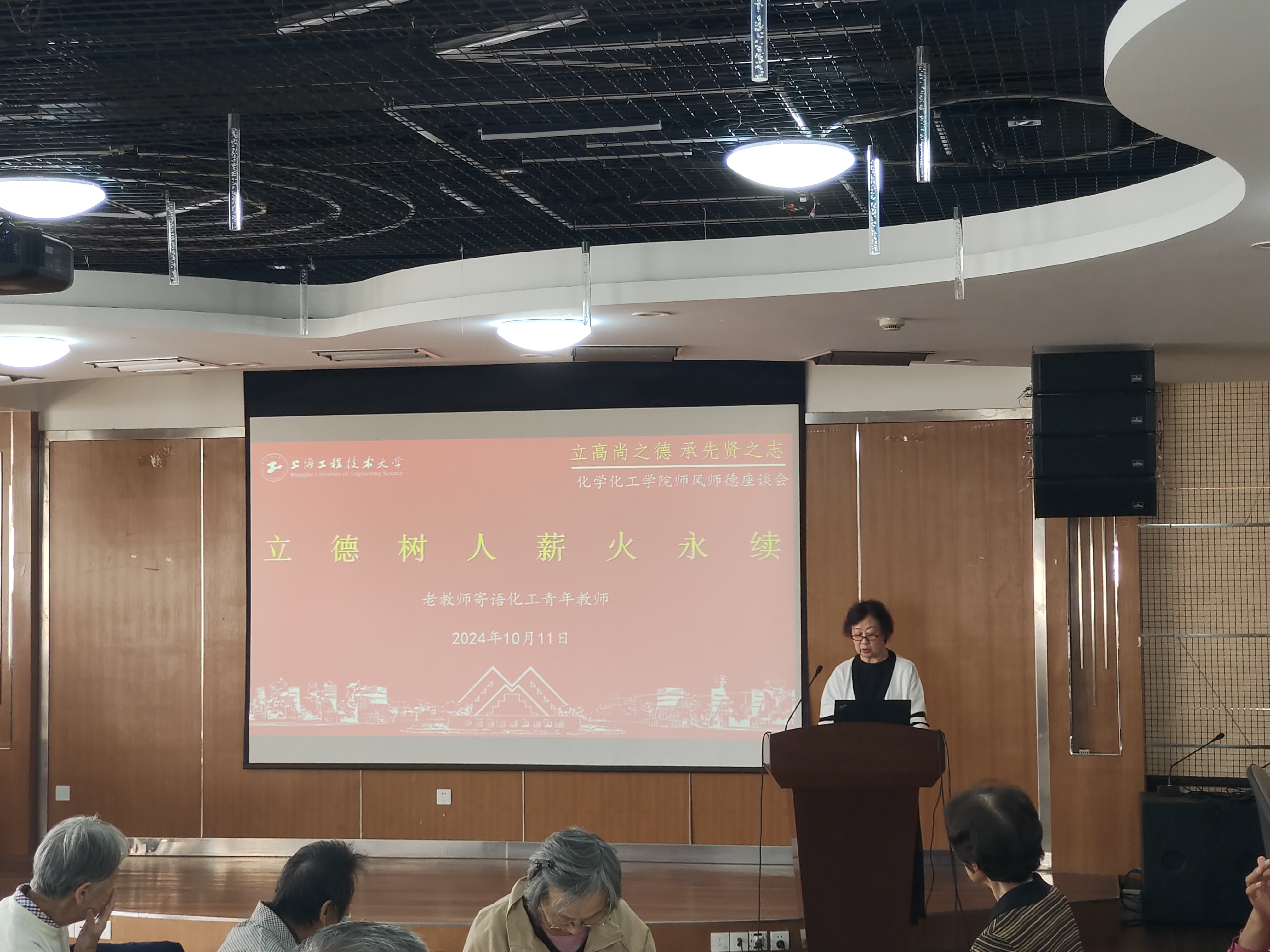 为加强公司教师思想政治和师德师风建设,落实立德树人根本任务,弘扬新时代高校教师道德风尚,努力建设有理想信念、有道德情操、有扎实学识、有仁爱之心的教师队伍,同时为弘扬中华民族尊老、爱老、敬老的传统美德,传承公司老一辈同志的优秀品质,在院内塑造“传帮带”的浓厚氛围。结合“大力弘扬教育家精神,加快建设教育强国”工作要求,10月11日,44118太阳成城集团结合敬老节活动,邀请原化学化工公司党委书记刘宇虹老师来长宁校区开展师德师风讲座,12名青年教师参加了讲座,讲座由工会主席张敏主持。