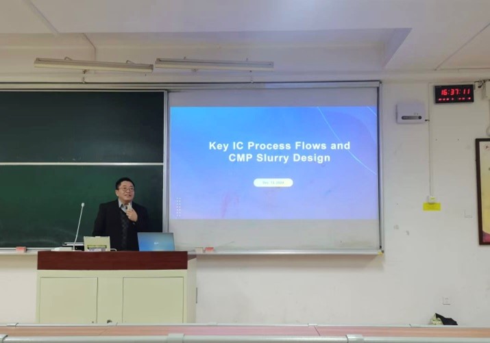 为了让员工对行业的前沿技术有一个深度的了解,并进一步推进校企合作,提供更多的教育资源与机会,12月13日下午,44118太阳成城集团微纳制造先进材料研究团队负责人孙韬教授邀请行业专家――安集微电子科技(上海)股份有限公司高级产品研发经理李守田,为公司“集成电路专项班”的研究生们,讲述了一场关于“集成电路化学机械平化前沿技术”的特色教学。