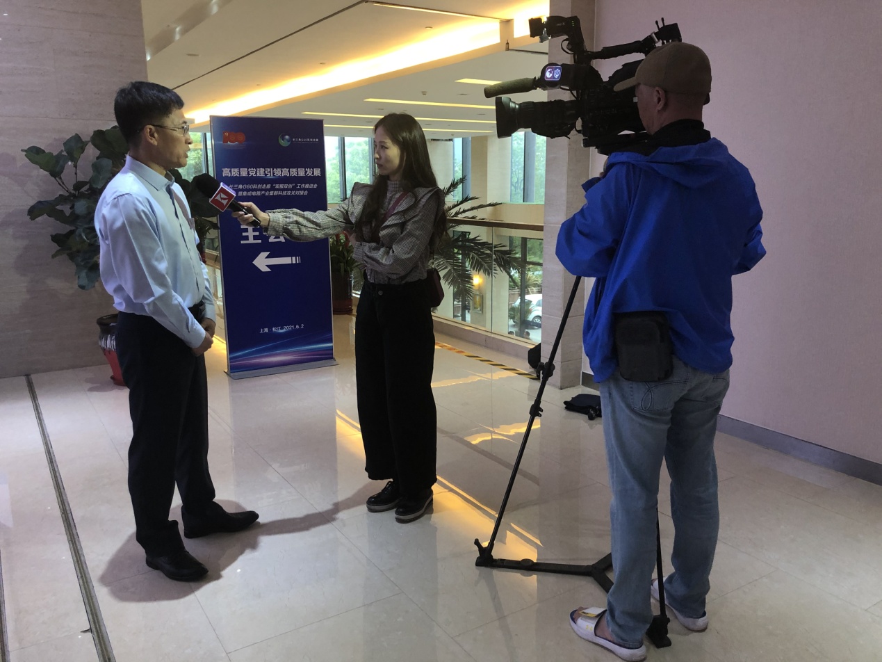 推进会上,启动了长三角G60科创走廊科技创新、党建创新深度融合项目,并现场“揭榜”与集成电路产业集群相关的重要技术难题和需求项目。在公司科研处的大力支持和统筹协调下,公司环境与资源创新中心负责人李光辉教授团队应邀出席对接会,受邀接受相关媒体采访,并现场“揭榜”承接上海新阳半导体材料股份有限公司的科技攻关项目,参与推进关键核心技术突破。