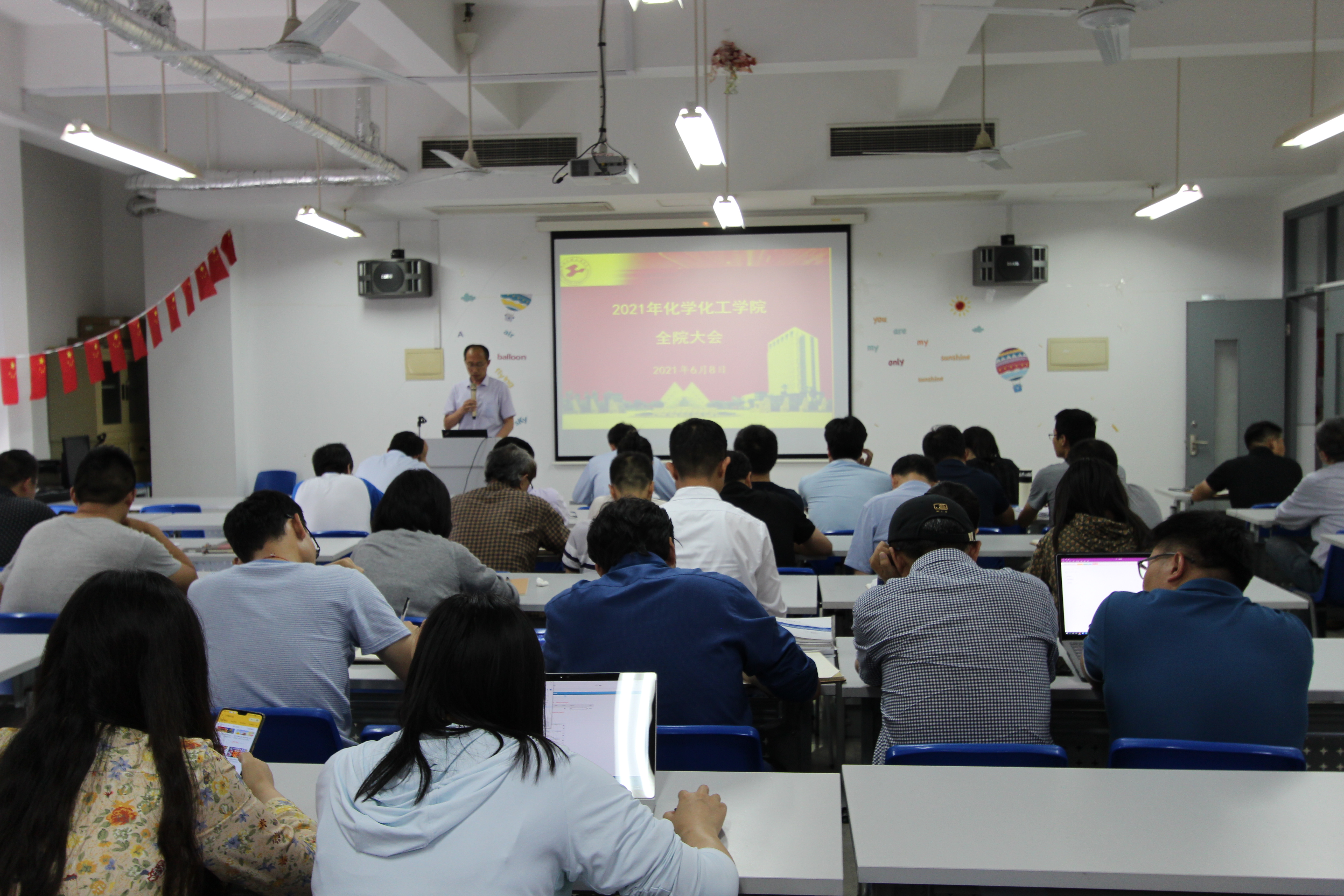 6月8日,化学化工公司在实训楼4405会议室召开全院大会,全体教职工参加了会议,会议由饶品华经理主持。