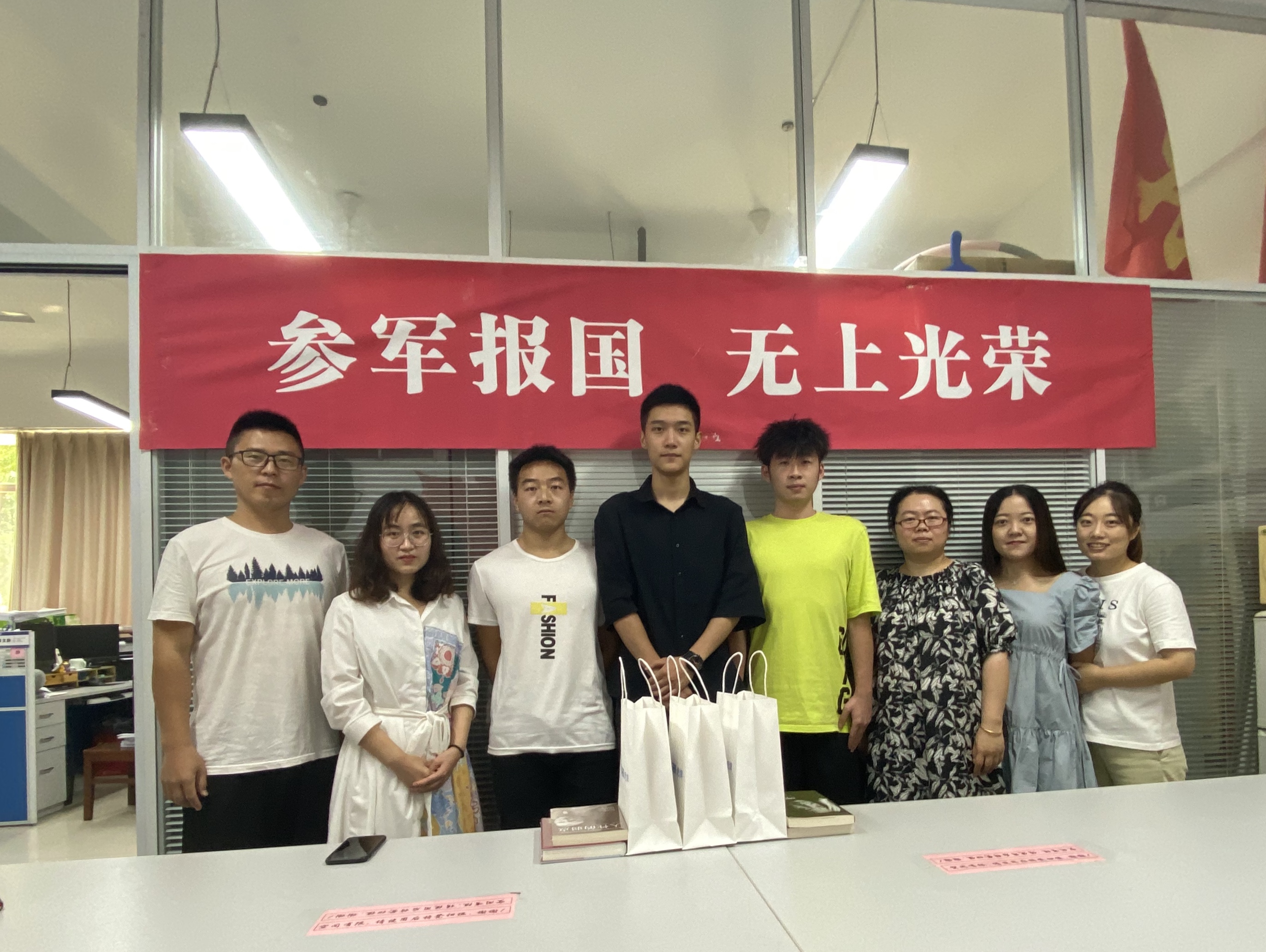 欢送会的最后,老师们还向入伍新兵赠送了慰问品,并同他们亲切合影留念。