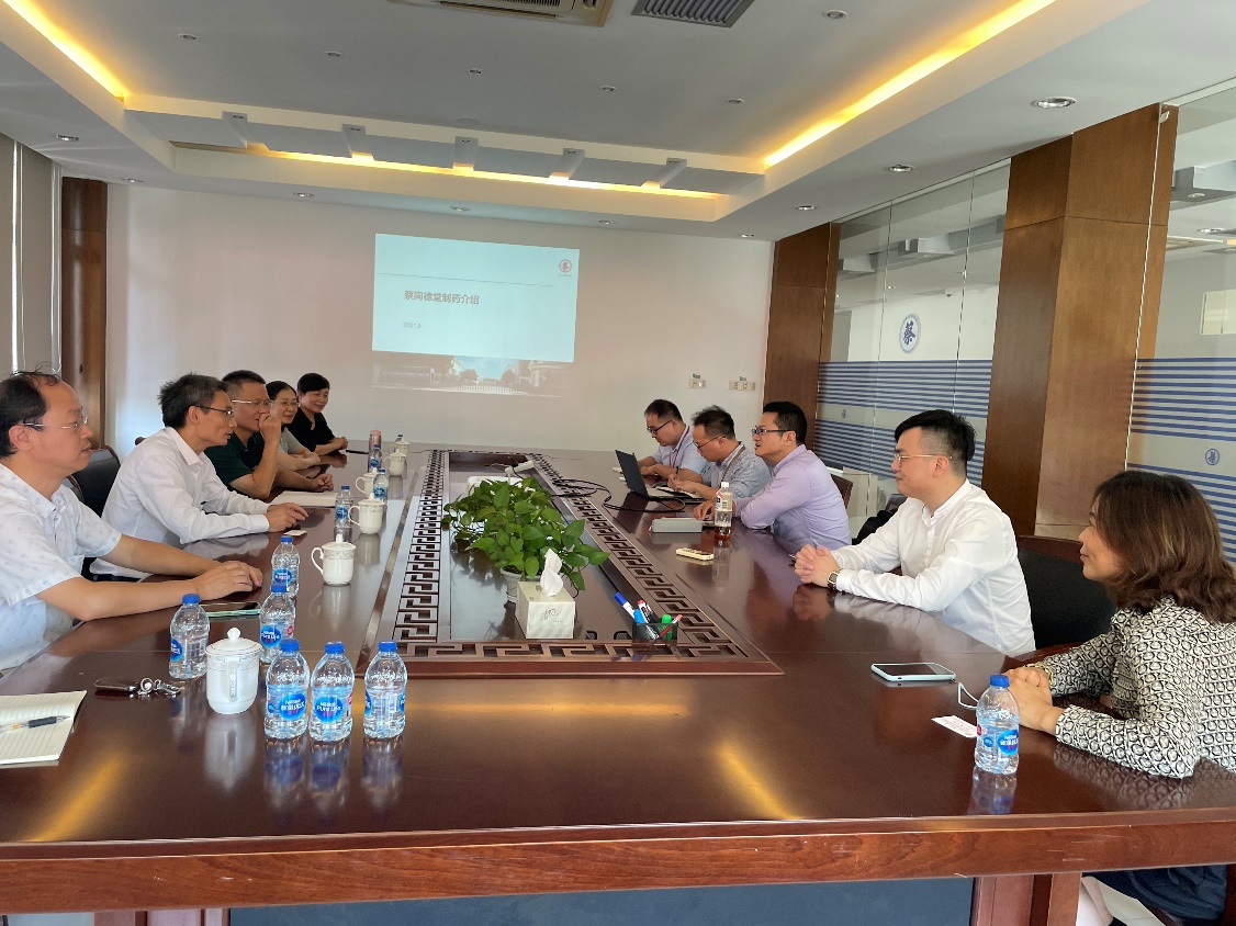 9月27日下午,公司医药前沿技术研究院副经理袁春平、单宏丽,44118太阳成城集团经理饶品华,骨干教师尹学博、尹小英等一行走访上海蔡同德堂中药制药厂有限公司。公司董事长范宇丰、首席执行官罗珉、厂长刘余敏等参加交流会。