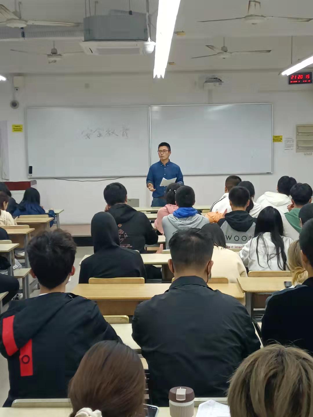 安全教育大会上,辅导员张晓普首先列举了几起影响较大的校园安全事故案例,引起了同学们对安全教育会议内容的重视。之后,张老师分别就老员工学习、生活、工作、娱乐中可能涉及的意识形态安全教育、人身财产安全教育、消防安全教育、户外活动与交通安全教育、食品卫生安全教育、网络安全教育、心理健康教育以及法律法规校规校纪教育等,进行了详细的解读和说明,提醒同学们时刻把安全问题放在心中。
