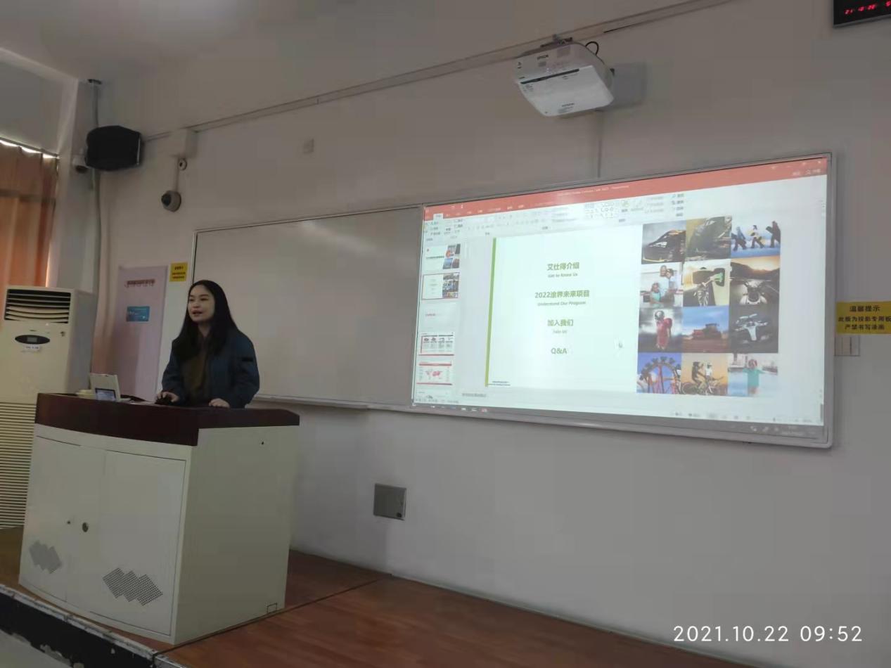 2021年10月22日,艾仕得在公司教学楼开展2022届秋季校园招聘宣讲会。