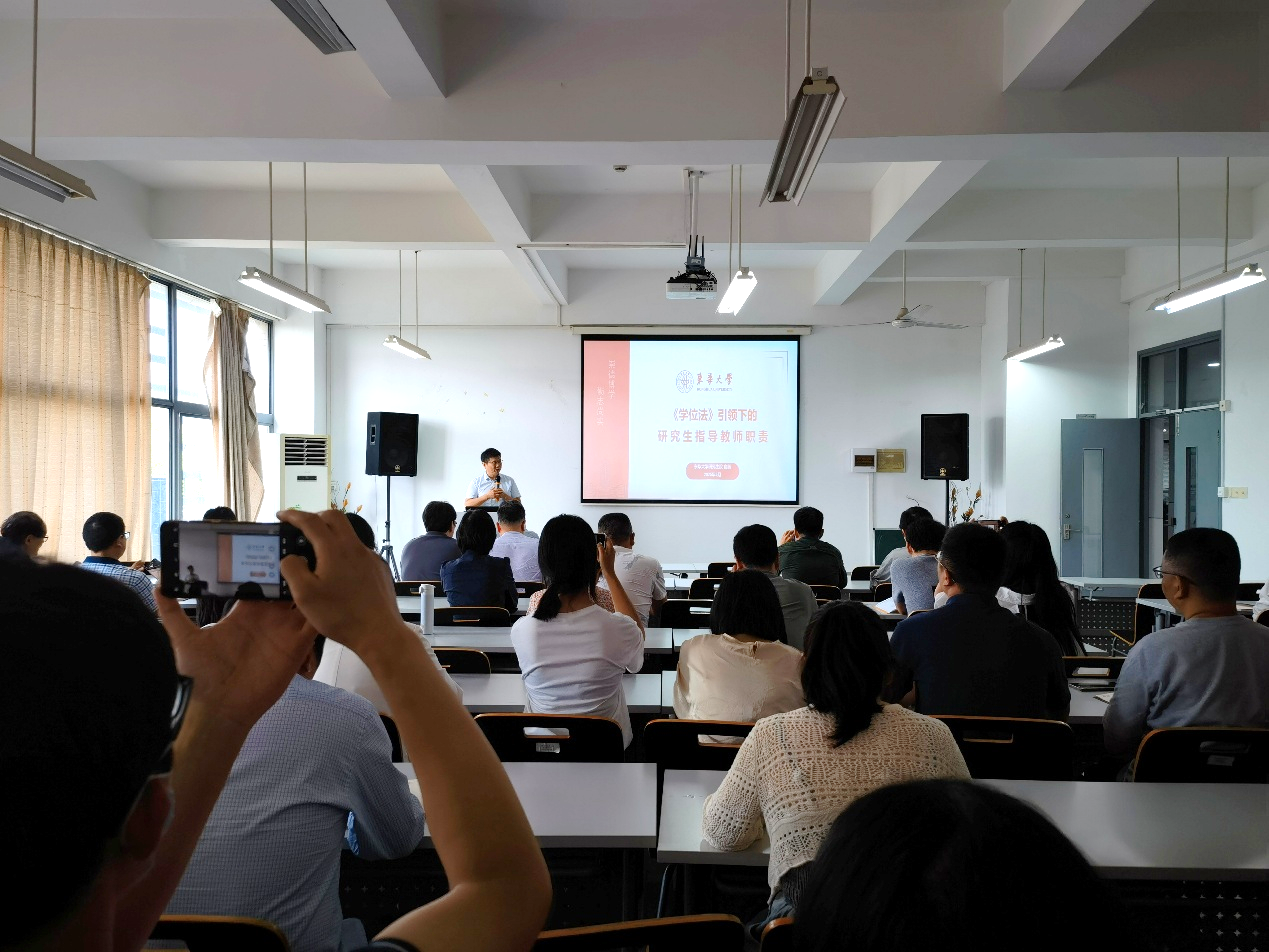 5月29日,东华大学研究生院常务副经理、学位评定委员会秘书长俞昊教授应邀为44118太阳成城集团全体研究生导师带来了一场主题为“《中华人民共和国学位法》引领下的研究生指导教师职责”的报告。报告会由化工公司经理李亚主持,公司共95名研究生导师参与培训。