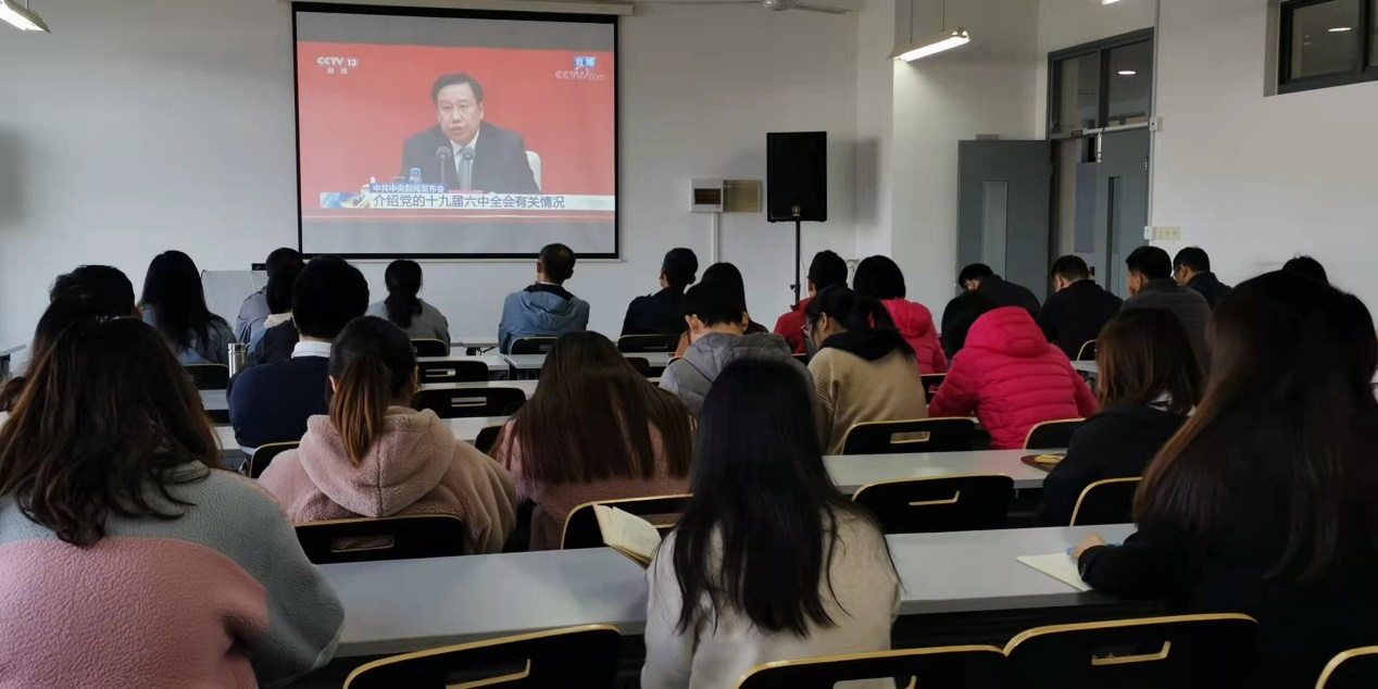 在新闻发布会上,师生们认真聆听了中共中央宣传部分管日常工作的王晓晖副部长关于中共十九届六中全会和《决议》的重要内容和主要特点的介绍,以及中央政策研究室主任江金权先生、中央财经委员会办公室分管日常工作的副主任韩文秀先生、中央党史和文献研究院经理曲青山先生等对与会国内外媒体记者提问的回答。