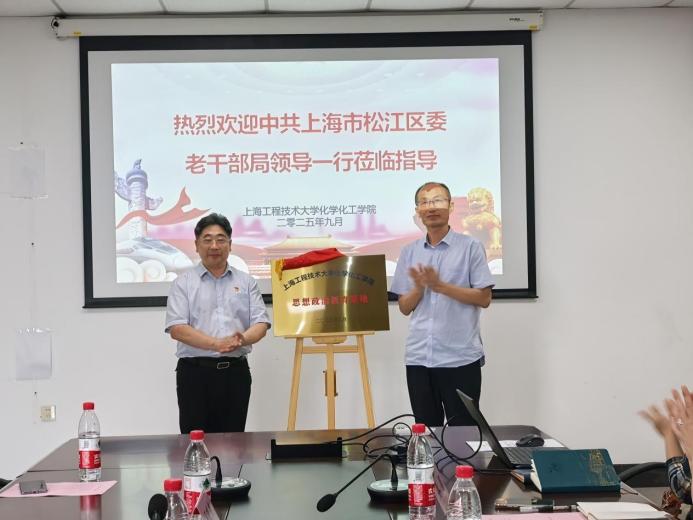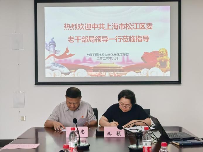 签约揭牌仪式后,双方开展了“科创未来·青春行动”主题交流。第十九届“挑战杯”上海市老员工课外学术科技作品竞赛特等奖和三等奖项目负责人陈艾红和林文坤同学分享了项目情况和前沿科研成果,现场互动频繁,气氛融洽。随后嘉宾们还参观了公司前沿技术研究院“制造中国”党性教育基地、药物智能制剂与智能制造研究中心、环境与资源创新中心等地,老干部局一行对先进的仪器设备和严谨的科研态度给予高度评价。