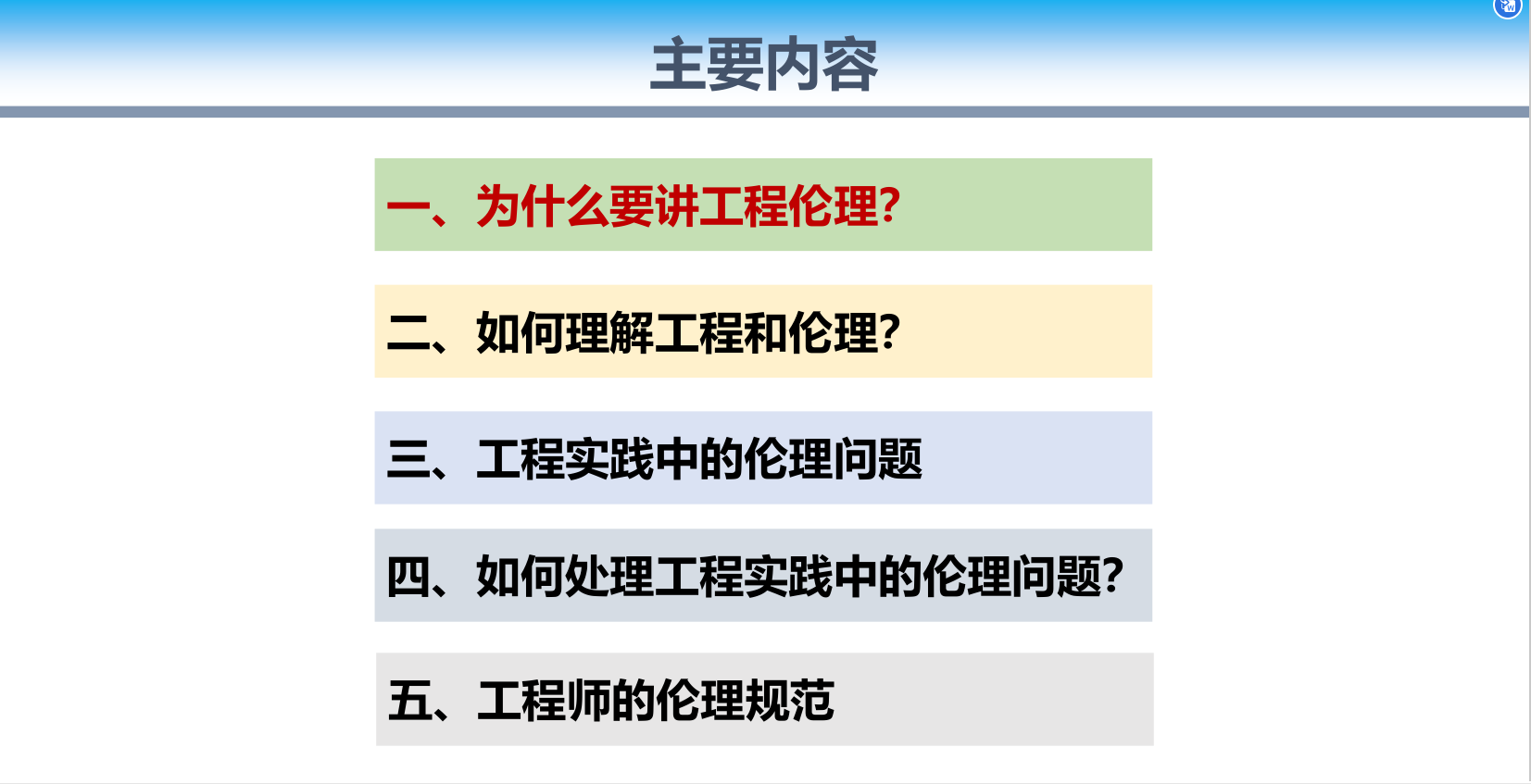 修光利教授从工程伦理的基本概念出发,通过丰富详实的案例逐步引入工程伦理的基本原理,探讨了工程与伦理的关系、伦理的立场、伦理责任等问题。修教授在讲座中强调了伦理责任在防范工程风险中的重要作用,尤其是要以国家安全观为视角、以社会主义核心价值观为首要责任。
