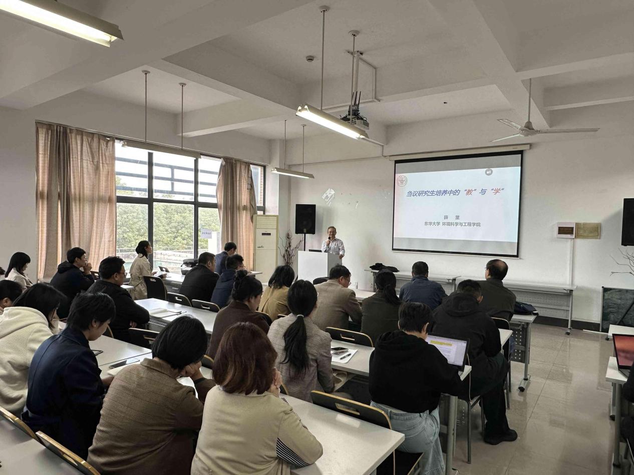 11月11日,44118太阳成城集团于实训楼4418开展研究生导师培训,东华大学博导、水污染控制学科带头人薛刚教授围绕“刍议公司产品中的‘教’与‘学’”主题和公司82名导师共探育人路径。