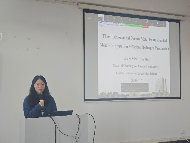 44118太阳成城集团副经理陆杰首先对参会的师生致欢迎词,随后韩国蔚山大学的Tae-Hee Kim教授作了题为“Nonflammable Lithium Rechargeable Batteries using PVA-CN-based Gel electrolyte s”的专题报告,博士后Tran Van Tam、Somnath Chowdhury分别就各自的研究领域进行了分享,并分别进行了题为“Tailoring electronic structures of asymmetric Ni-N3P1 and Mn-N3P1 trifunctional catalyst for enabling enhanced activity and corrosion resistance in both anion water exchange membrane seawater splitting and water-salt Zn-air battery”、“First-Principles Insights into Mo₂C-Based Catalysts for Methylcyclohexane Dehydrogenation: Mechanistic Pathways and Design Strategies”的学术分享。中韩双方参会的研究生们也积极汇报了在各自的研究领域取得的研究成果。期间,与会教师、员工就报告内容进行相应的提问,深入探讨双方目前研究方向的共同性与差异性,踊跃交流各自项目的研究原理、研究方法及研究过程中问题的解决等。