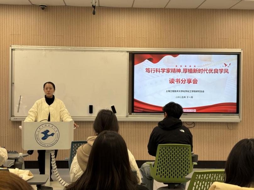 活动由阚世杰同学主持。在开场中提出青年研究生更应在阅读中汲取力量,在科研中践行担当。随后,张燕黎老师发表致辞。她鼓励同学们以书为友,通过阅读了解科学家的成长历程与科研理念,从中体会求真务实、勇攀高峰的精神品质。她强调,优良学风既是科研创新的基础,也是开展诚信研究的重要保障。