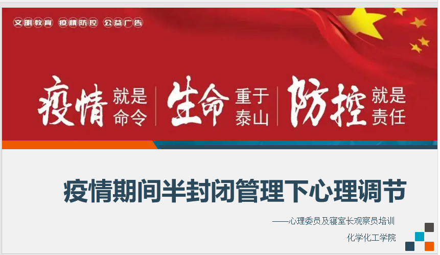 最后,肯定了所有的心理委员和寝室长观察员的重要作用,在半封闭网格化管理下,希望寝室长们能够做到关心和包容寝室同学,及时排解寝室内的消极情绪,如有异常及时与辅导员和导师沟通联系,共同守护特殊时期下全院员工的心理健康。