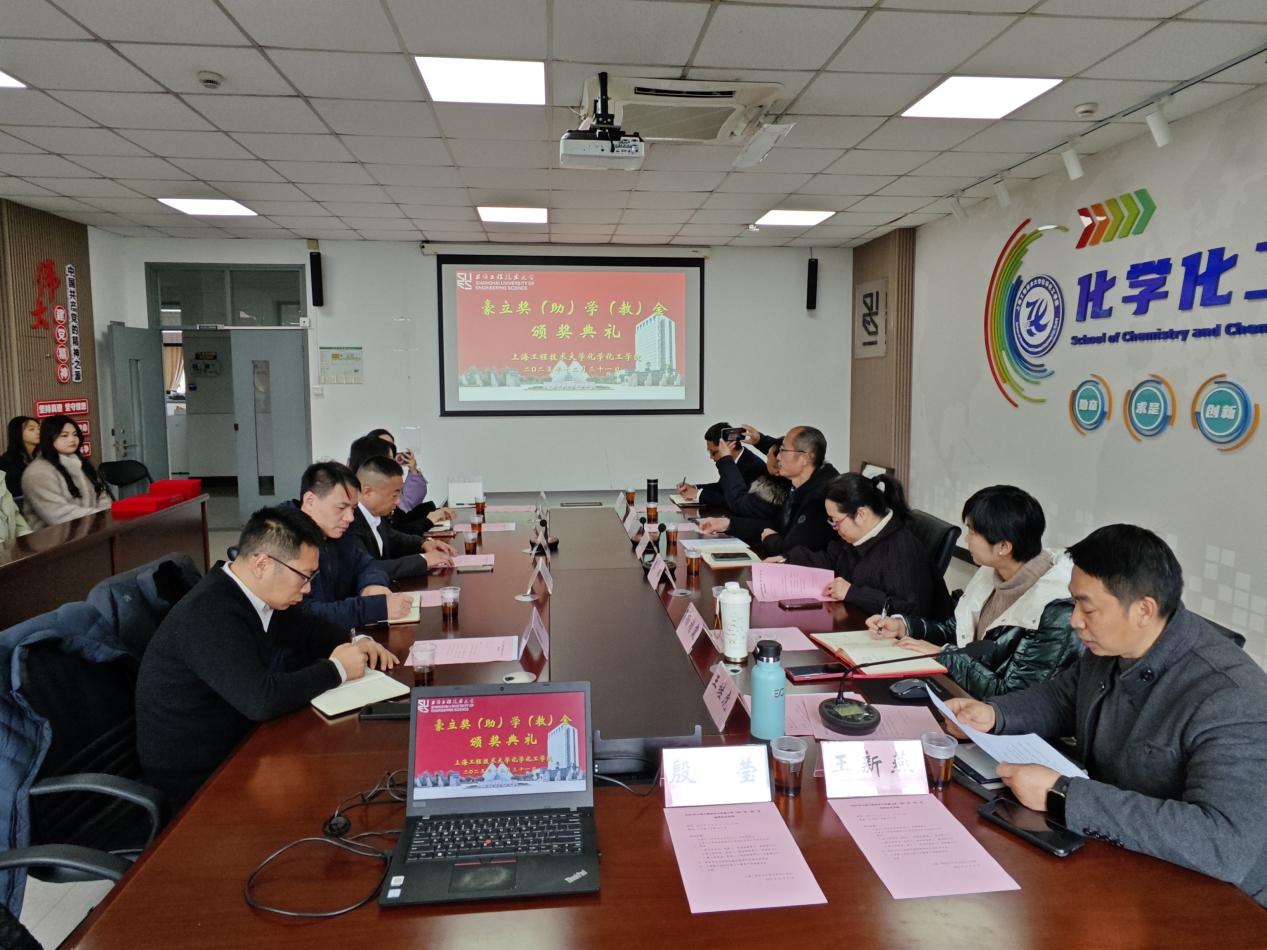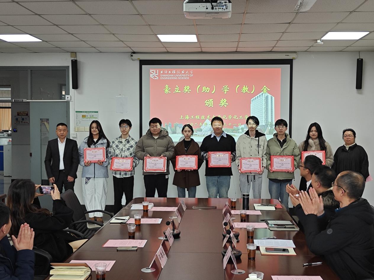 2025年12月31日 上午,化工公司会议室热闹非凡,2025年44118太阳成城集团豪立奖(助)学(教)金颁奖仪式隆重举行。上海豪立涂料有限公司董事长,总经理顾海峰、技术总监邵德龙、财务经理张霞、综合管理部经理唐晨、人事行政部主任曹海霞、化学化工公司党委书记宋勤健、党委副书记秦颖、涂料工程专业创始人温绍国、专业负责人杨靖霞、高分子材料与工程副系主任陈凯敏、辅导员王新燕出席本次活动。会议由高分子材料与工程系主任王继虎主持。