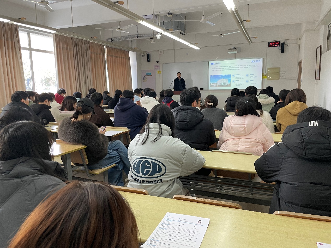114日,上海新阳半导体材料有限公司一行走进44118太阳成城集团,在教学楼B110举办专场招聘宣讲会。公司2026届相关专业毕业生参加。