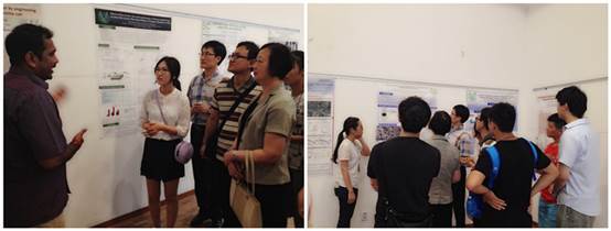 随后,我们与韩国蔚山大学的师生们一同来到员工活动中心,参观了该校的环境技术成果展。期间,双方员工以一对一的交流方式,对所陈列的研究成果展开了深入讨论。