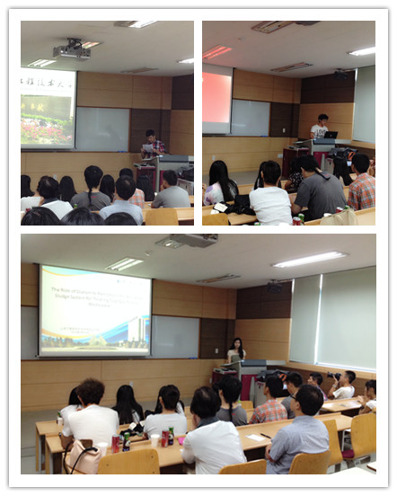 716日上午的交流会上,公司三位员工代表以PPT、视频等形式,分别为韩国蔚山大学的师生们介绍了中国著名的旅游景点与传统节日、44118太阳成城集团的发展历程与员工活动、44118太阳成城集团基本情况与最新研究成果。下午,韩国蔚山大学化工公司的许承鉉教授及其研究生代表分别为我们做了题为“Research of Nanotechnology in UOU: environmental application”、“Photocatalysts and Application”的讲座。