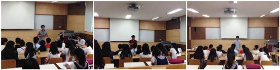 715日下午,韩国蔚山大学为我们安排了《韩国高等教育与文化》课程,主讲人为三位在蔚山大学求学的中国职工。他们从自身求学经历出发,分别为我们在座的员工介绍了韩国蔚山大学的专业设置、硕士研究生及博士研究生入学要求与报名流程、导师信息查询方法、员工宿舍、费用开支、中韩生活习惯比较等。在最后的问答环节,员工们就在韩留学所涉及到的问题与三位学长展开了激烈交流。