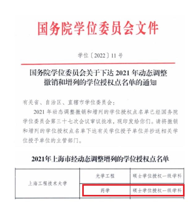 根据《上海市学位委员会关于开展2021年博士硕士学位授权学科和专业学位授权类别动态调整工作的通知》(沪学位【2021】8号)文件精神,研究生处加强统筹,指导推进数理、化工等公司积极申请统筹增列硕士学位授权点工作,并邀请学科评议组专家进行评审论证。光学工程一级学科面向国家需求和科技前沿,聚焦光学成像与信息处理、激光加工与精密制造、功能材料与器件物理等三个学科方向与特色,服务于光电、通信和材料等领域需求,培养具备创新性应用和发展光学技术的高素质人才。药学一级学科面向国家战略需求,以药物智能制剂和智能制造等关键应用基础研究为突破口,服务上海生物医药和生命健康产业,培养交叉复合的医药制造人才。经过反复论证和不断完善,以及校学位评定委员会审议,两个学科于2021年11月下旬向上海市学位委员会提交了申请材料。
