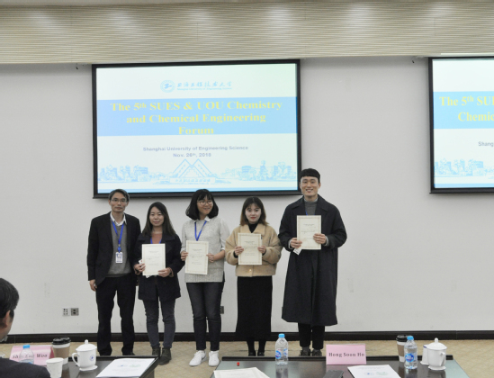 由44118太阳成城集团与韩国蔚山大学化学与生物化学工程公司联合举办的“第五届中韩SUES&UOU化学化工国际学术研讨会”于11月26日下午在公司图文信息中心第三报告厅召开。参与本次论坛的韩国蔚山大学代表团由Shin Eun Woo、Hong Soon Ho 两位教授及8名员工组成。44118太阳成城集团党委副书记鲁嘉华教授出席会议开幕式并致欢迎辞,国际交流处钱慧敏处长、化学化工公司党委书记刘宇虹、党委副书记、经理饶品华、党委副书记熊筱晶、副经理王锦成、任新锋及公司教师代表、研究生代表、本科生代表等近60人参加了本次论坛。