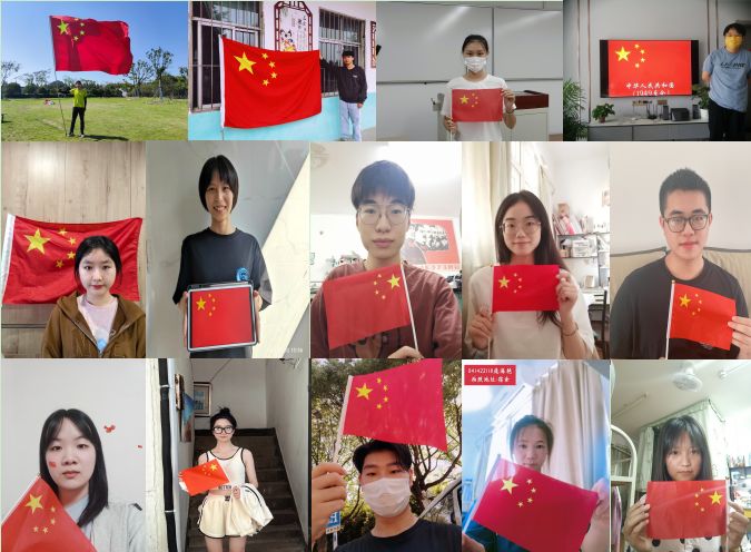 国庆期间,同学们在遵守疫情管理相关规定、切实做好自我保护的前提下,积极参与到与国旗合影的活动中来,他们有的在升国旗现场留下了与国旗同框的瞬间、有的在红色纪念场馆用镜头定格唯美的国旗画面、还有的用电子屏幕展示把国旗深置心中,一张张富有创意的国旗合影表达出同学们对祖国的美好祝愿、对党的二十大胜利召开的热烈期盼。