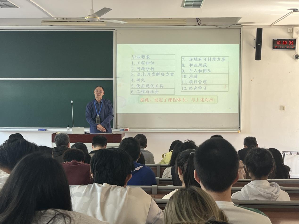 专业负责人张文启教授代表环境工程系为新生们做了专业介绍。张文启老师结合我国“双碳”战略的实施、环保产业的机遇,生动详实地介绍了公司环境工程专业的由来与发展、专业概况及环保产业的发展与人才需求。作为中国工程教育认证通过专业及国家级一流本科专业建设点,张文启老师详尽地为新生们讲解了本专业的培养目标、毕业要求及课程体系,并一一回答了新生们关于培养计划方面的疑问。