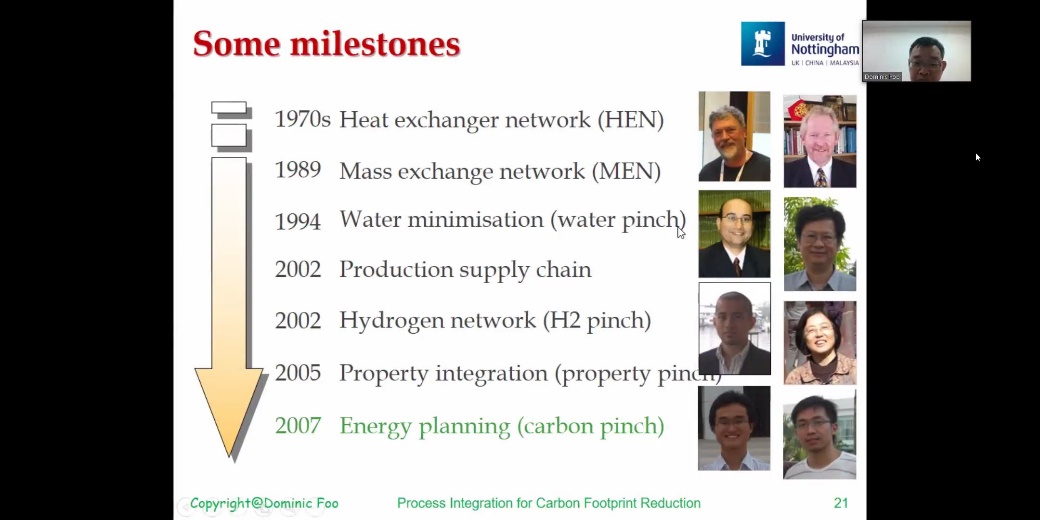 诺丁汉大学马来西亚分校(University of Nottingham Malaysia)化学与环境工程系Dominic C. Y. Foo教授在报告“Carbon Footprint Reduction for the Manufacturing Processes”中介绍了过程集成技术在工业碳减排中的应用,并结合案例分析重点讲解了碳夹点技术在节能减排和能源规划中的应用。Dominic Foo教授还分享了在过程集成领域从事科研的体会和建议,强调了跨学科合作的重要性。