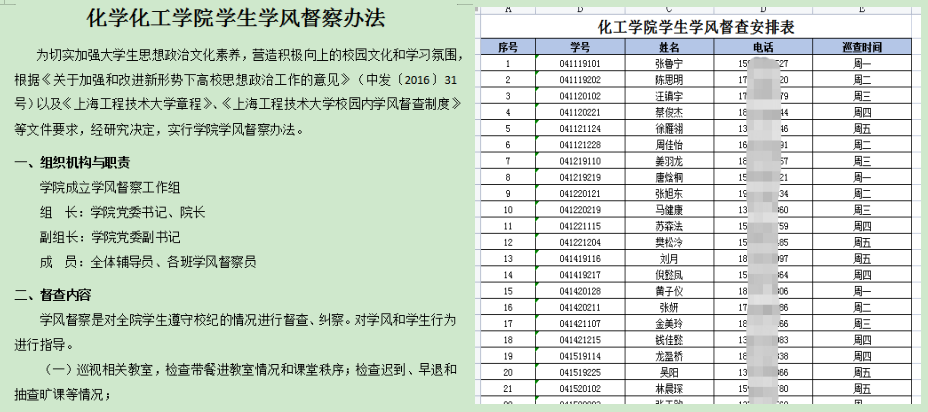 加强常规学风检查巡学。在学风督察方面,公司还成立了以学工办辅导员老师、员工干部联合组成的日常课堂学风检查小组,负责公司学风的日常督察,与公司党政领导在学期初、假期后、末考前等重要时间节点的专项巡查相互补充,形成良好学风建设的外在推动力量。