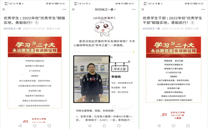 开辟学风建设专栏促学。以公司易班公众号“月读理解”和微信公众号“SCCE化工一家”为网络学风建设平台,开辟学风建设专栏,发布“学霸说”、“晒笔记”、“老员工年度人物”、“优秀员工”、“优秀集体”等系列学风相关推文,宣传师德高尚、学风优良的先进师生事迹,不断强化对员工良好学风养成的引领。