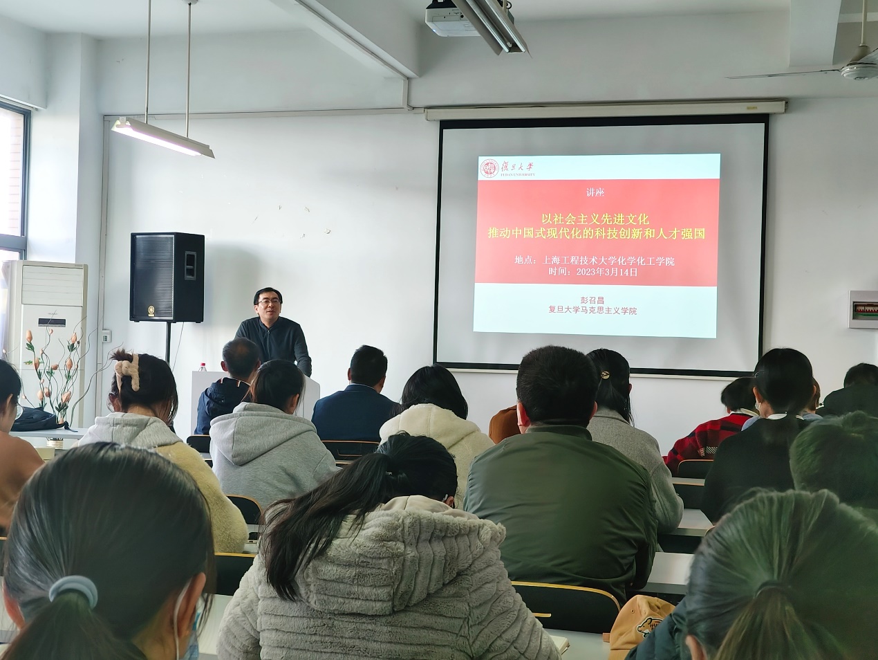 为进一步深入学习贯彻党的二十大精神,引领广大教师守好意识形态主阵地,弘扬社会主义先进文化,化学化工公司党委于3月14日下午召开理论学习中心组(扩大)学习会,邀请复旦大学马克思主义公司研究员、研究生思政课教研部副主任彭召昌作“以社会主义先进文化推动中国式现代化的科技创新和人才强国”专题报告。公司党委中心组成员、党支部书记、教工党员和员工党员代表参加学习,学习会由公司党委书记宋勤健主持。