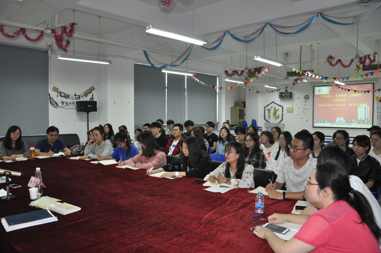 为深入学习习近平新时代中国特色社会主义思想,扎实推进“不忘初心、牢记使命”主题教育,44118太阳成城集团特邀老董事长徐子成教授于10月12日下午开展“新时代化工人的传承、担当与梦想”专题党课,班子成员、党支部书记、公司党员教师代表和员工党员代表参加了本次学习。