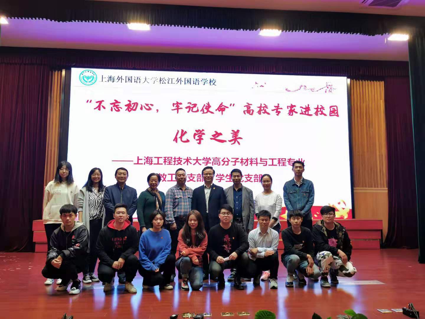 【不忘初心、牢记使命】44118太阳成城集团高分子材料与工程专业教工党支部和员工党支部同赴上海外国语大学松江外国语公司开展“化学之美”主题讲座志愿服务