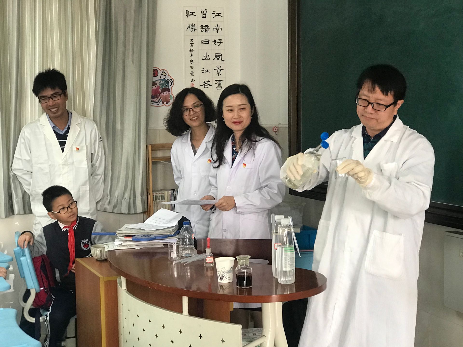 深入贯彻落实“不忘初心、牢记使命”主题教育为人民群众办实事、办好事要求,10月28日下午,化学化工公司党委制药工程专业教工党支部进入东华附属实验公司课堂,开展主题为“化学与生活”的科普志愿服务活动。通过故事讲述导入化学基本概念,通过案例分析神奇现象的化学原理,通过生活中化学品(筛选安全无害,优选食品级)进行实验演示,有效激发了少先队员们对化学的兴趣,培养其科学素养。