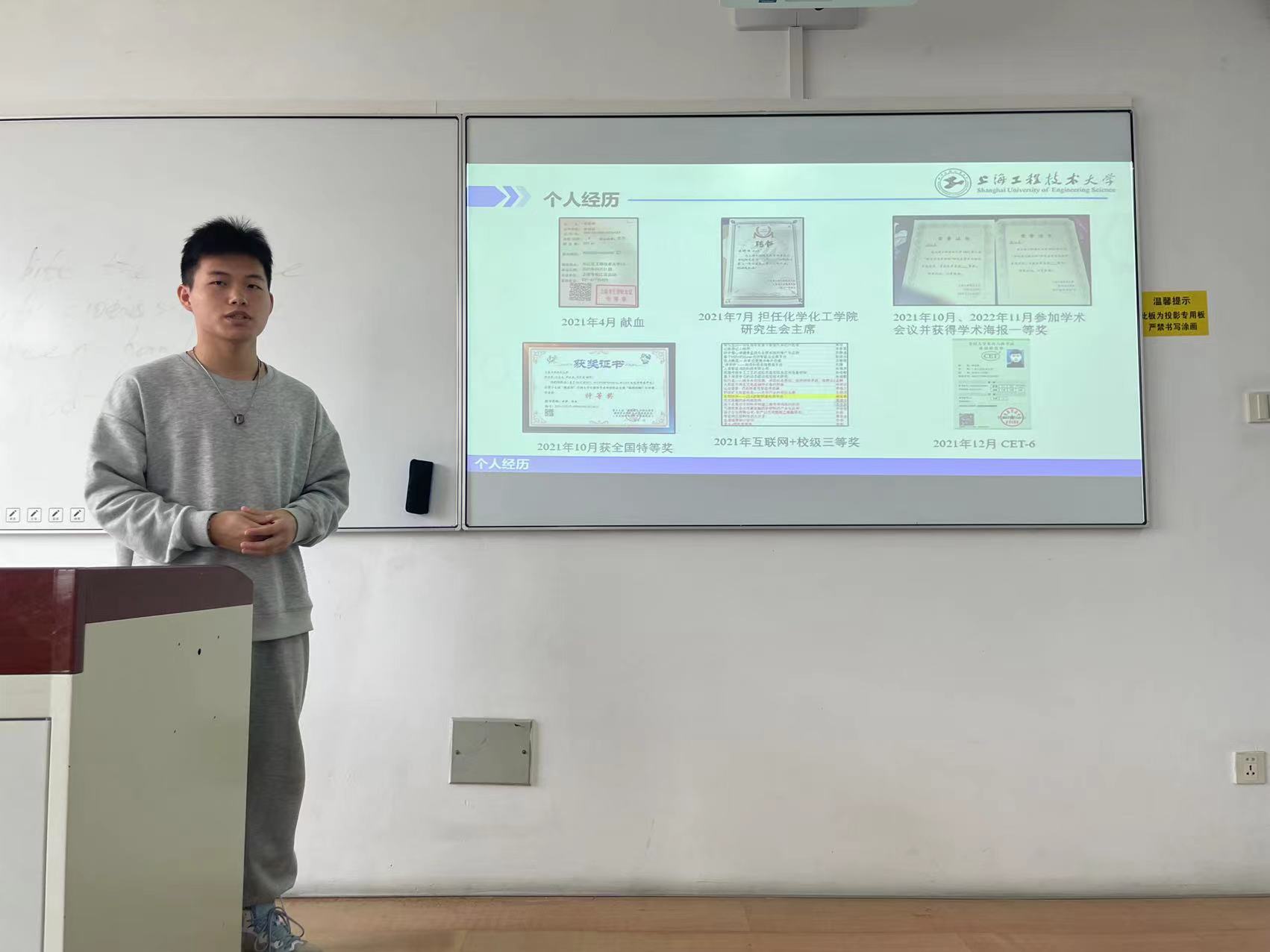 会议伊始,邓老师介绍了本次活动的背景,使各位同学明确研究生引领计划的目的和意义。接着,研究生党员代表,优秀毕业生谢延春同学交流发言。谢延春同学以第一作者和共同一作分别发表二区SCI论文一篇,累计影响因子达10.087,以第一发明人申请发明专利进入实审一项,获得44118太阳成城集团“年度人物-学术之星”和上海市优秀毕业生等荣誉、 多次获得校级奖学金、获得2022-2023年度国家奖学金、获得上海市老员工创新创业项目入孵计划以及第十七届“挑战杯”全国老员工课外学术科技作品竞赛“揭榜挂帅”专项赛全国特等奖等奖项。他从考研准备、研究生期间的课题研究、申请优秀毕业生三个方面介绍了自己的心得体会,让更多的同学能够从中借鉴学习。