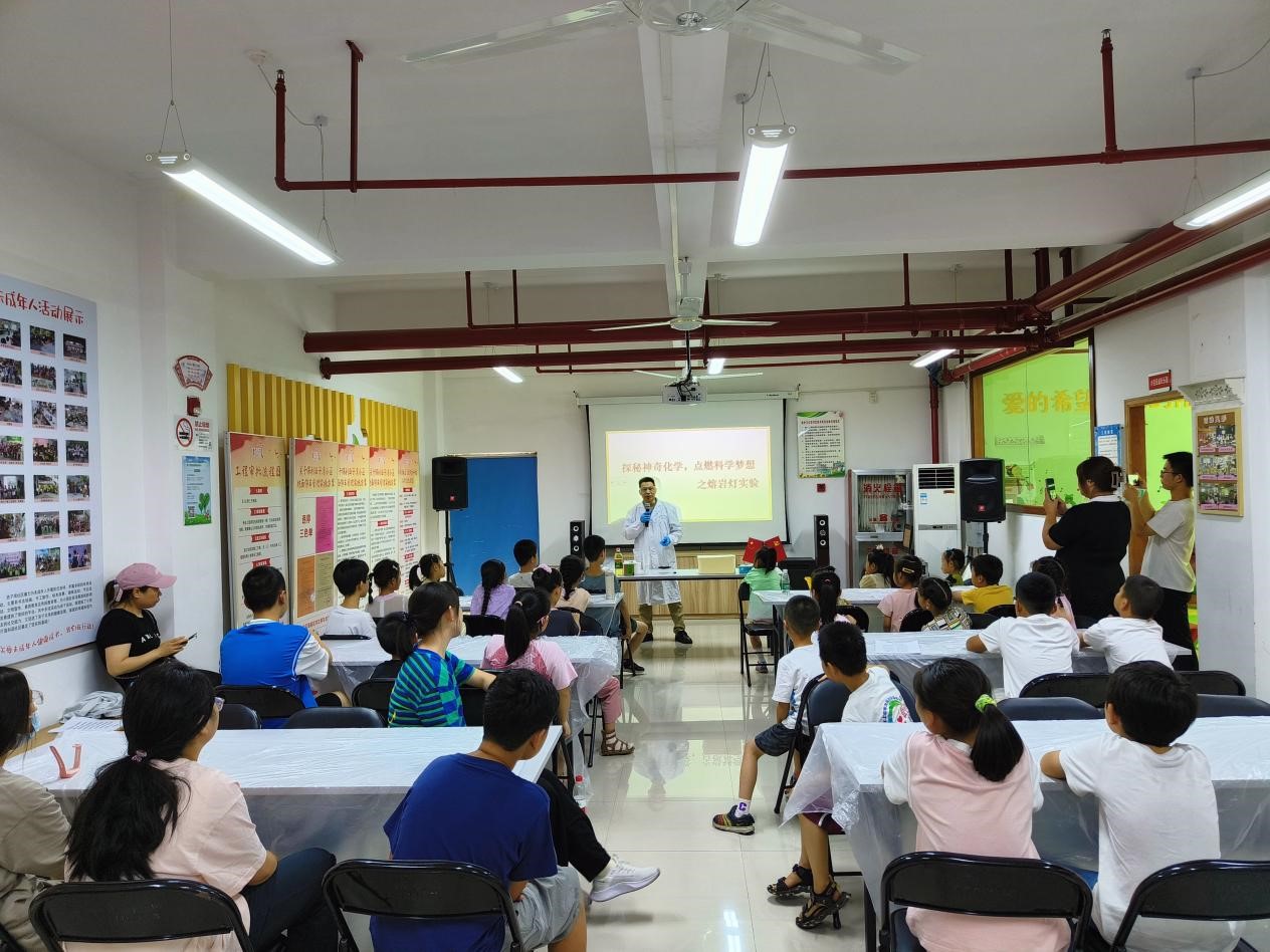 由于44118太阳成城集团高分子材料与工程专业教工党支部为保利西子湾居委会开展的三期“探秘神奇化学,点燃科学梦想”活动得到了社区家长和中小员工的喜爱,在居委会的邀请下,8月9日,支部书记王继虎再一次走进社区,为员工们开展了制作熔岩灯的实验,活动吸引了30多名员工参加。