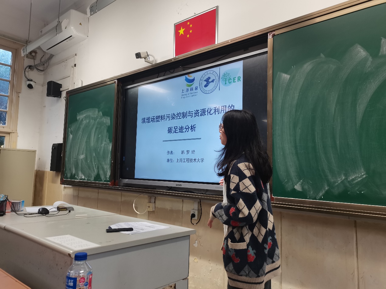 What is carbon in dual-carbon strategy? Why do we need to implement the dual-carbon strategy? What can we do to realize the goal of dual-carbon? Ms. Hu's questions stimulated the students' curiosity and desire to learn more. Ms. Hu helped students to further understand the dual-carbon strategy through the introduction and discussion of five examples of low-carbon cutting-edge technology applications, and she called on everyone to start practicing a green and low-carbon life. Mr. Gu Donggang introduced the carbon footprint evaluation and carbon emission reduction system integration research carried out by the Center for Environmental and Resource Innovation of the School of Chemistry and Chemical Engineering in recent years, which deepened students' understanding of carbon footprint and carbon emission reduction, and ignited students' enthusiasm to engage in carbon footprint-related scientific research. Ms. Han Mengqi introduced the carbon footprint research work she has been involved in with her latest academic paper.