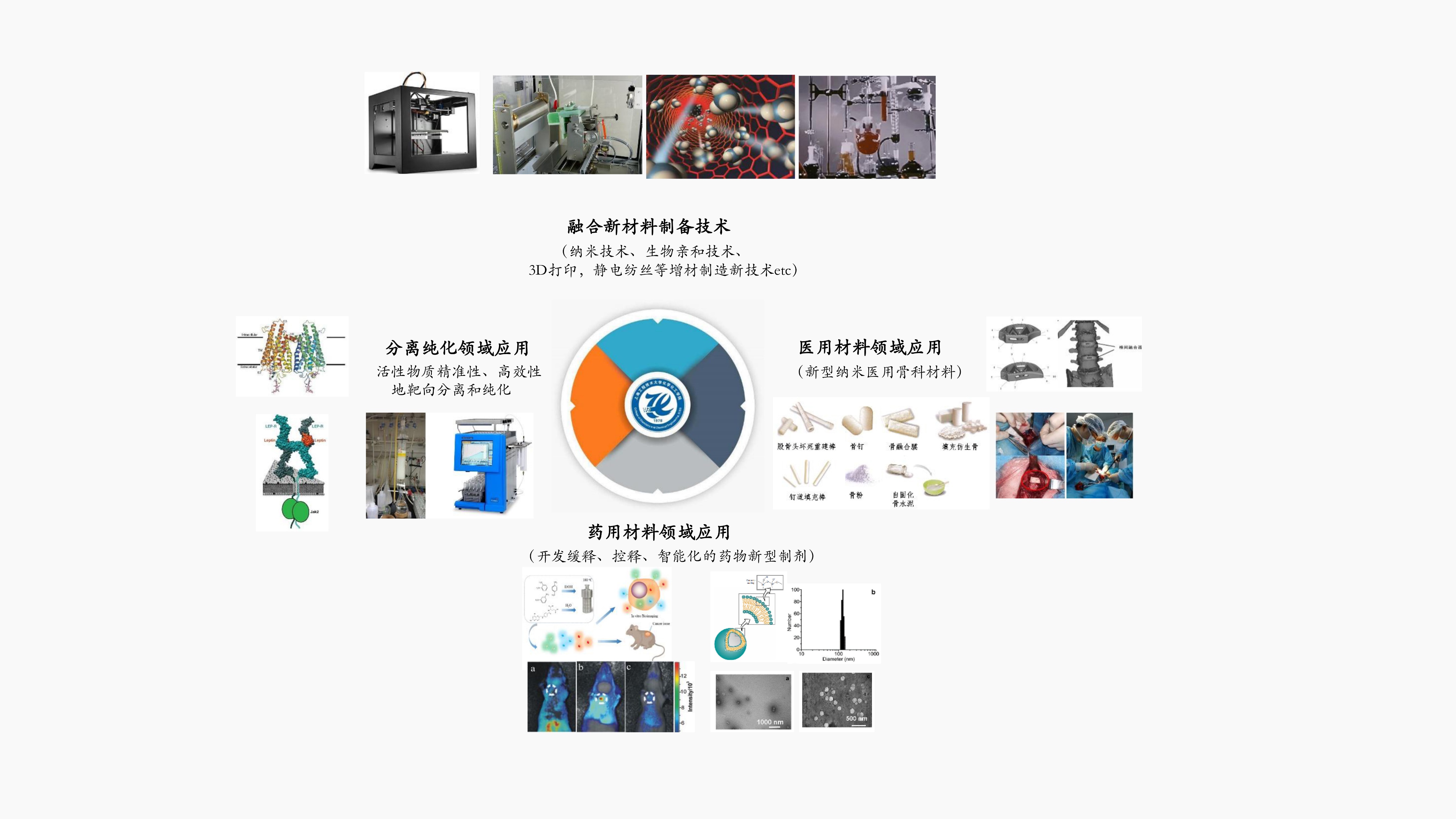 探索新型功能材料制备技术在分离纯化材料、药用材料、医用材料等领域的应用,如纳米技术、生物亲和技术、3D打印,静电纺丝等增材制造新技术,以实现活性物质精准性、高效性地靶向分离和纯化。