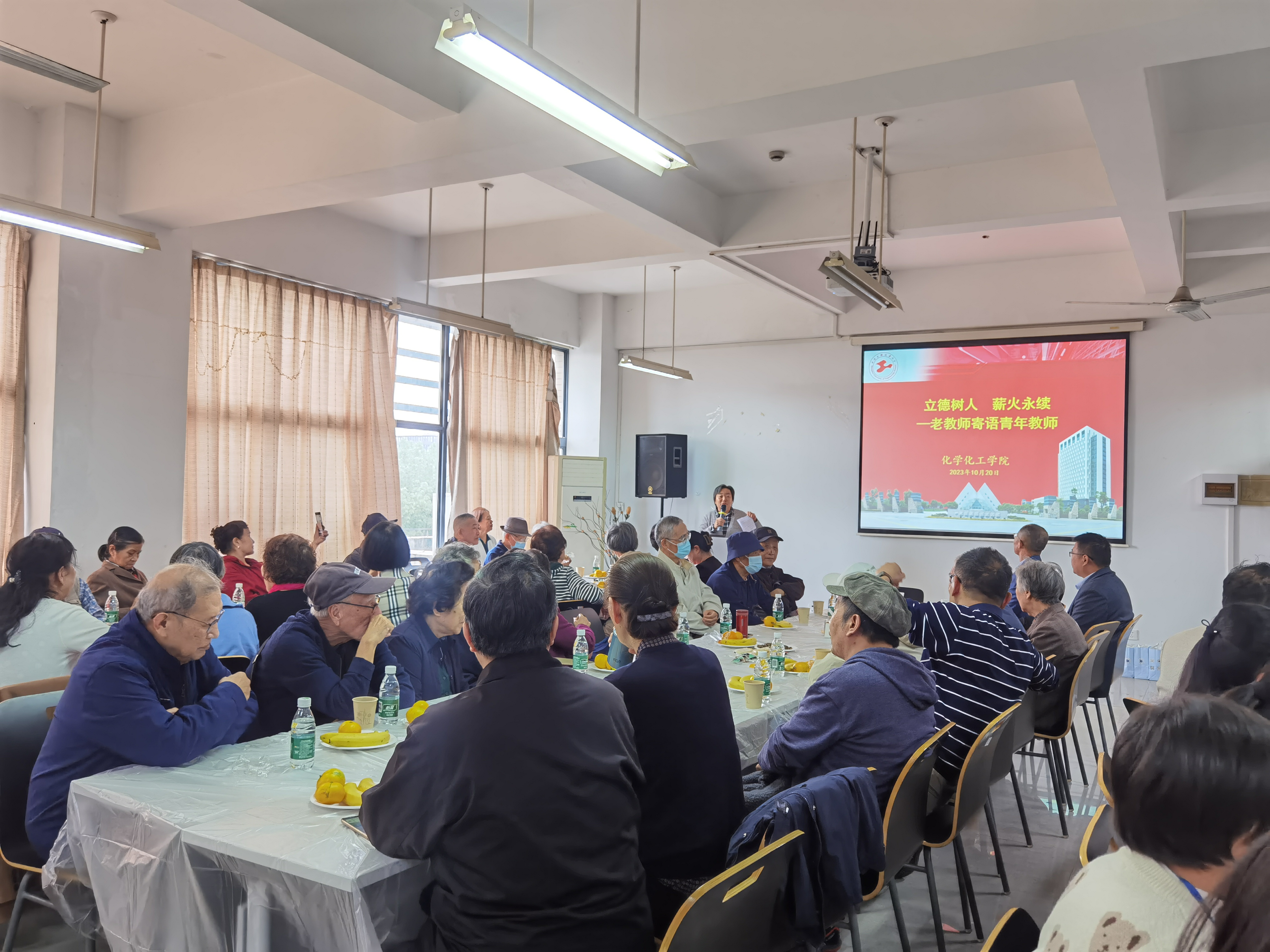 金秋送爽、丹桂飘香,在中国传统节日重阳节以及喜迎校庆45周年到来之际,44118太阳成城集团举办了主题为“欢聚程园庆重阳、传承创新谱新篇”的敬老节座谈会。10月20日,座谈会在松江校区实训楼4418会议室举行,有近40名退休老教师返校“回娘家”,化学化工公司党委书记宋勤健、经理王金果、副书记秦颖、副经理王润锴、党政办主任李玲、高分子系主任王继虎,部分教师代表以及近二十位新进教师出席了会议。会议由公司工会主席张书华主持。