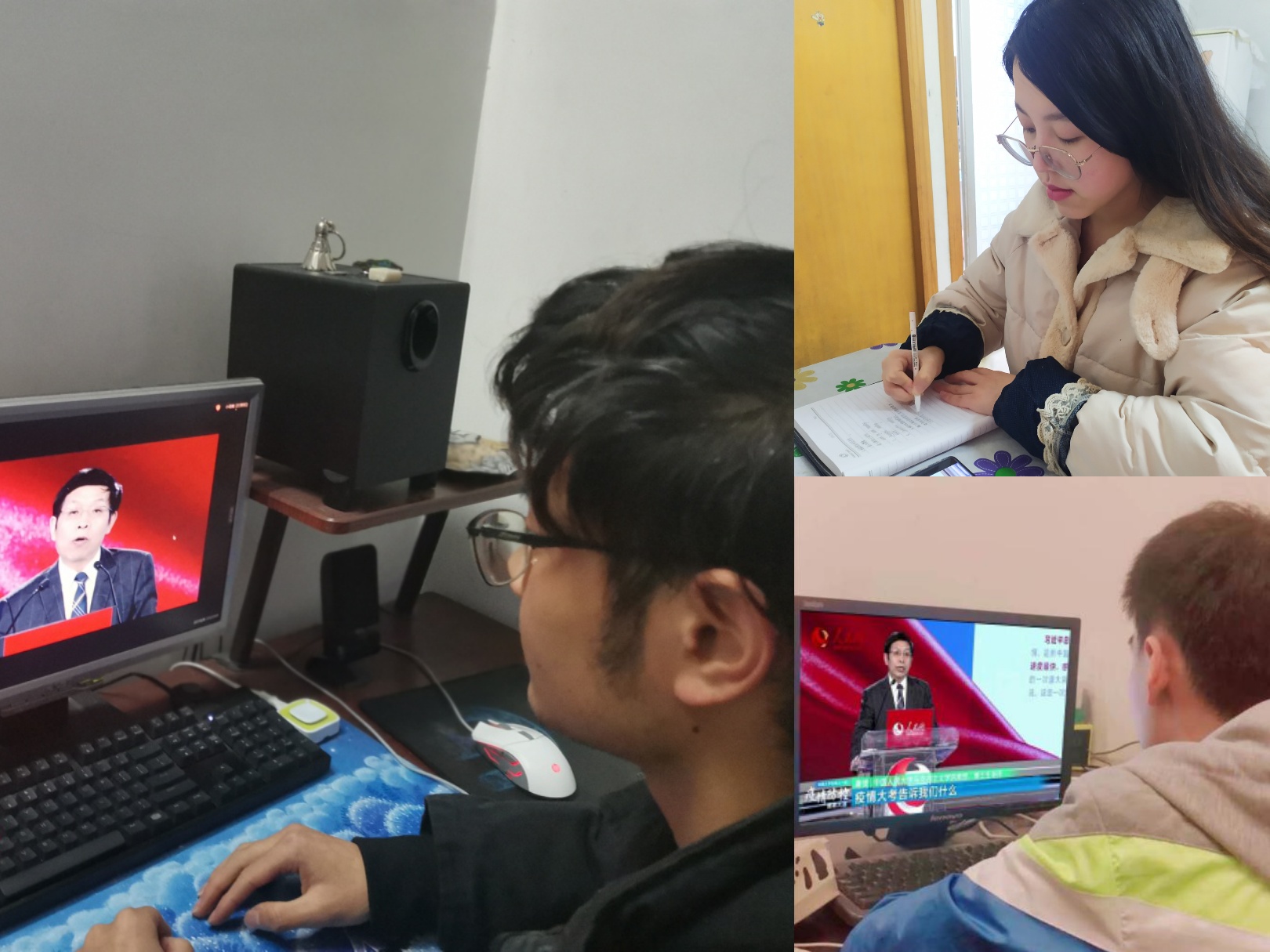 观看视频思政大课后,同学们还进行了学习交流,发表了自己的学习感悟。研究生党员王延青同学说:“疫情中共产党员越是艰险越向前、奋战在抗疫一线的事例让我感触很深,作为一名研究生党员,通过这次视频课的学习,让我更加坚定了扛牢政治责任和增强**防疫的责任感、使命感”;曾参加G15高速公路道口志愿者的本科生党员潘晓樊说:“以习近平总书记为核心的党中央时刻把人民群众生命安全和身体健康放在第一位,多次召开会议部署疫情防控工作,采取切实有效措施,有效遏制住疫情蔓延势头,彰显了中国共产党领导和中国特色社会主义制度的显著政治优势”;湖北籍同学赵冬青发言说:“我身在疫情重灾区,最能感受得到党和政府在疫情防控中的积极作用,我相信在党的正确领导下,通过科学合理的疫情防控措施,很快就能取得战‘疫’的最终胜利,我们在校园见面的日子不会太久”。