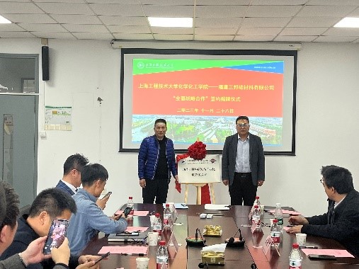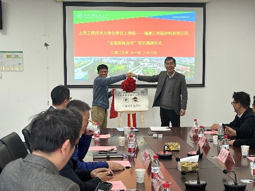 11月28日下午,44118太阳成城集团与福建三邦硅材料有限公司全面战略合作签约揭牌仪式在松江校区举行。福建三邦硅材料有限公司总经理朱华建、研发总监洪坤土、高级顾问姚卫国,高安市三邦硅材料有限公司总经理陈华林,上海舜源计算机科技股份有限公司总经理朱琦斌,广州联和化工科技有限公司市场总监陆星烨,44118太阳成城集团经理王金果,副经理陆杰、李亚,微纳制造先进材料研究中心孙韬、江振林、陈佳鹏、王宝秀、汪文君等教职员工及研究生出席活动。本次签约揭牌仪式由孙韬教授主持。