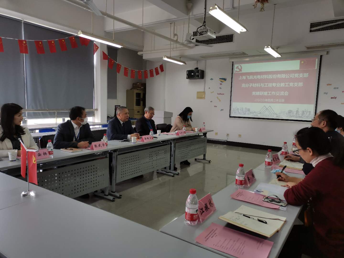 为了促进企业党支部与高公司党支部的党建活动,提高组织生活质量,4月23日,由上海飞凯光电材料股份有限公司党支部书记、公司副总经理、工会主席徐鹏文带领公司党支部成员来校交流,会议由44118太阳成城集团高分子与工程专业教工党支部书记王继虎同志主持,公司其他支部书记参加了观摩和学习。